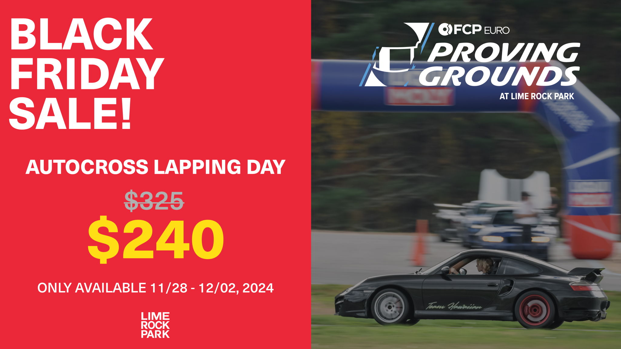Lime Rock Park is offering special Black Friday through Cyber Monday pricing for Autocross gift certificates! For $240 ($35 below our weekdays rates) gets a gift certicate good for any ONE autocross program weekday or weekend (normally $325!) These specially priced gift certificates go on sale at noon on Thanksgiving until Midnight Cyber Monday. They are transferrable and and never expire. These gift certificates are only good for Autocross Lapping Days and can not be transferred or credited for other events or programs. Space not guaranteed, early requesting of dates is suggested. Weekends generally fill about 2 weeks in advance.